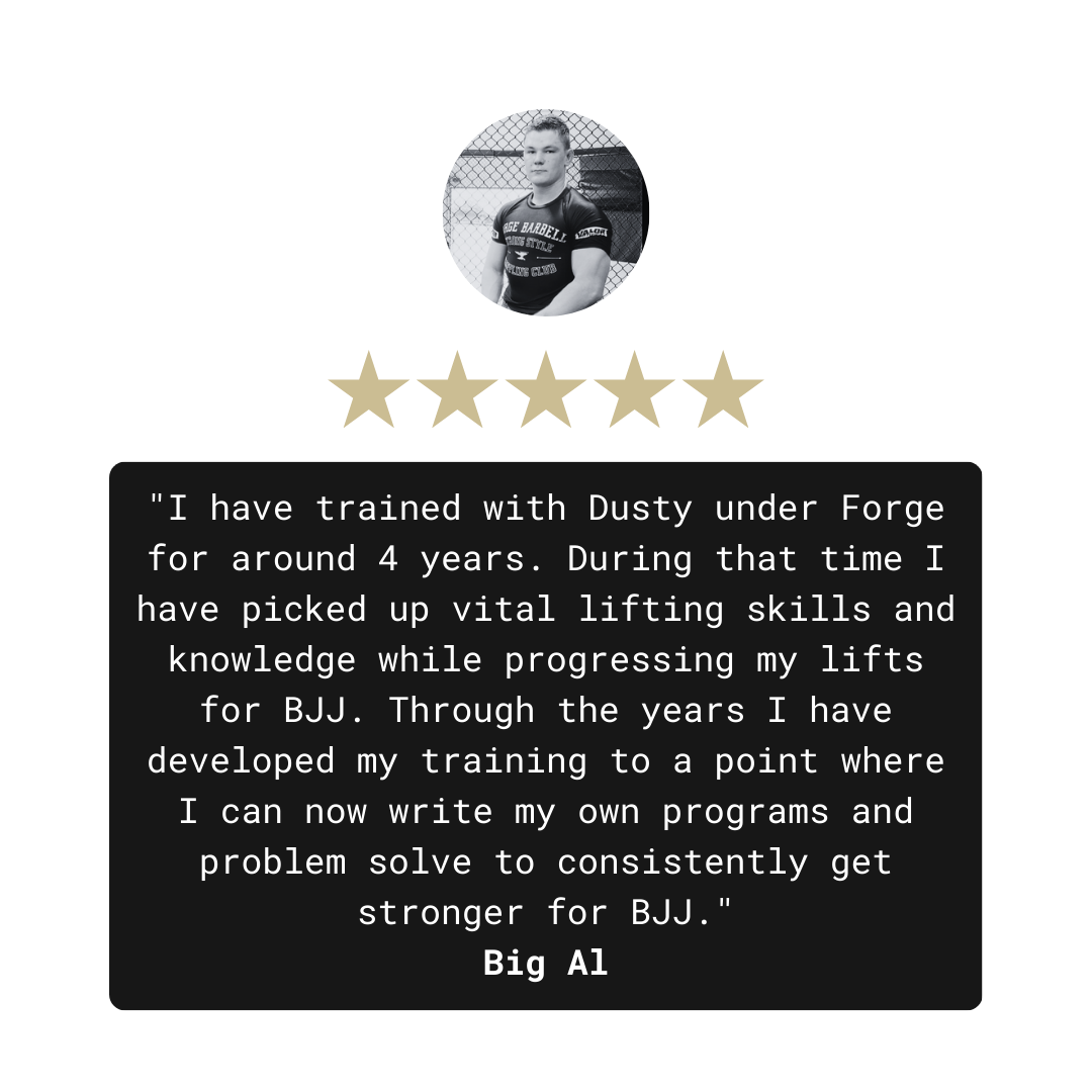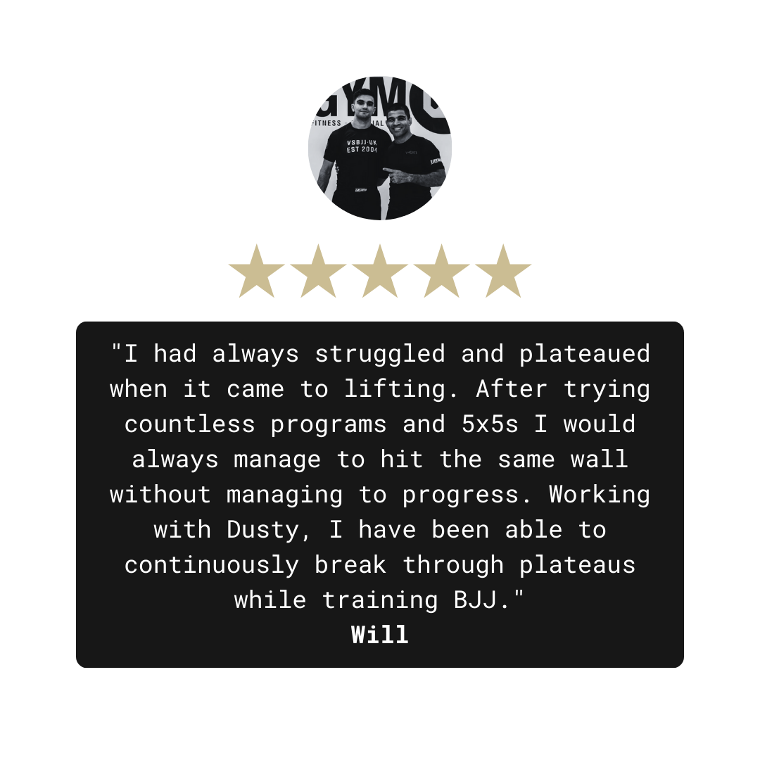 Proven training methods & cardio protocols designed specifically for grapplers with 1-2-1 coaching support to help you break through strength plateaus and keep progressing.